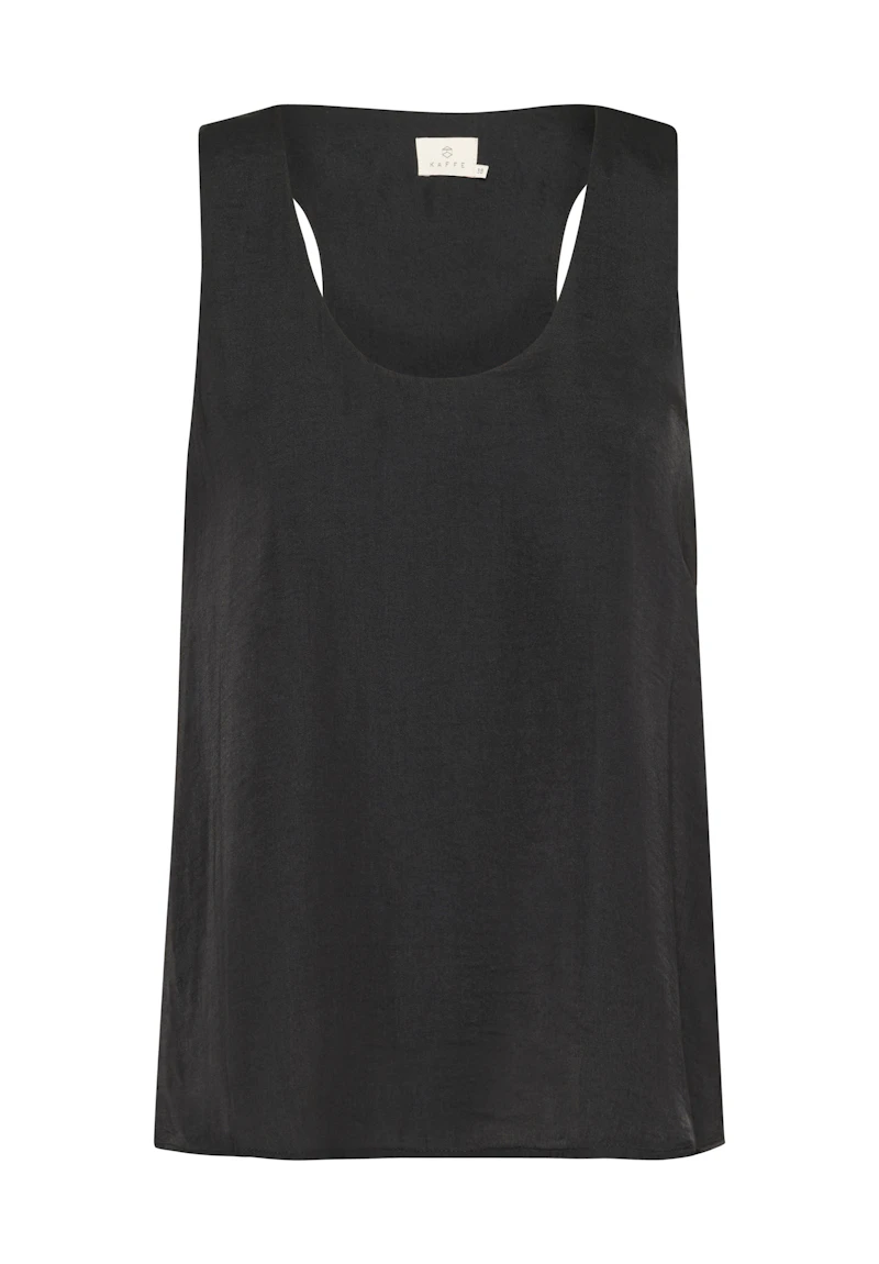 ProductomschrijvingStijlvolle zwart topje Heeft een satijne uitstraling en voelt ook zo aan. Maakt je outfit meteen wat chiquer. Stofsamenstelling: 100% polyester