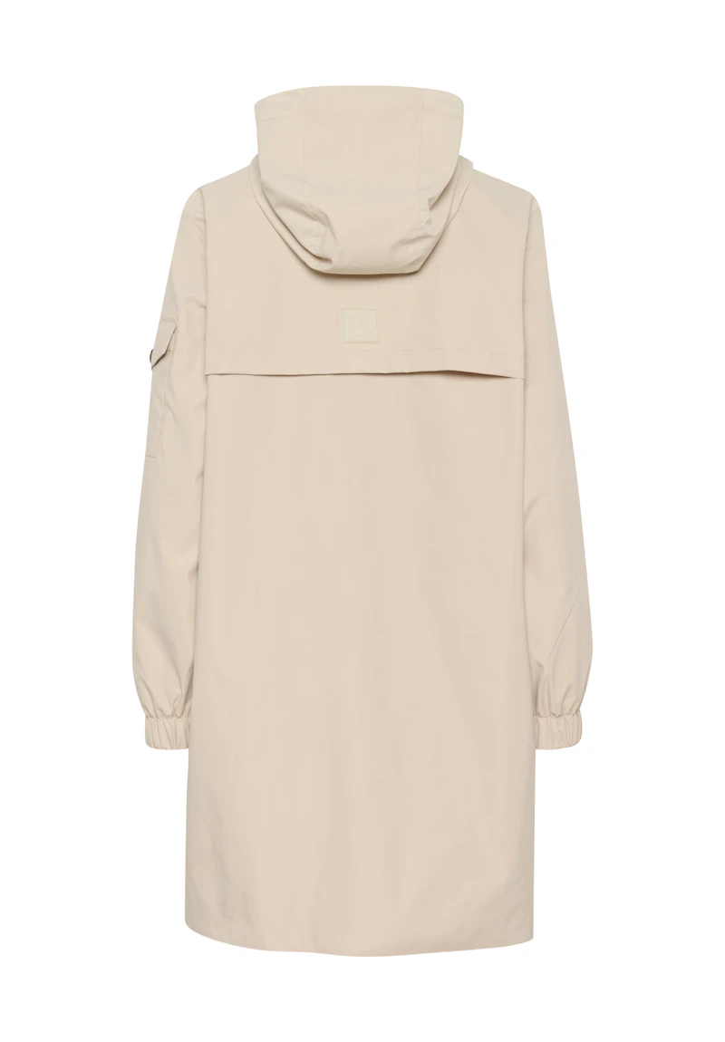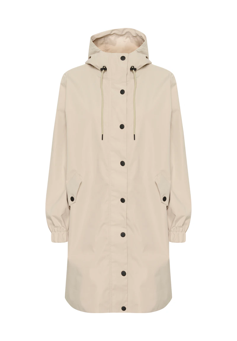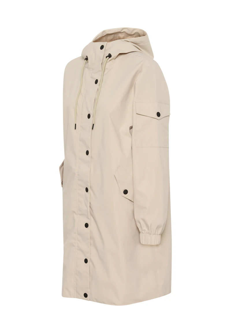 - Drukknoopsluiting, trekkoord in de capuchon en handige klepzakken, afgewerkt met elastische boorden.