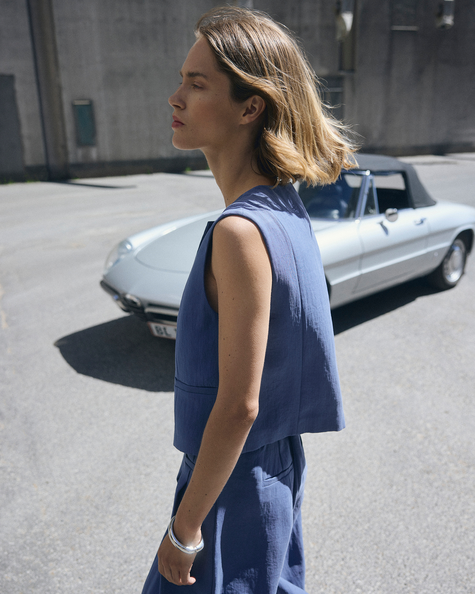 - Deze prachtige mouwloze gilet heeft een strak en verfijnd ontwerp met een gestructureerd silhouet.