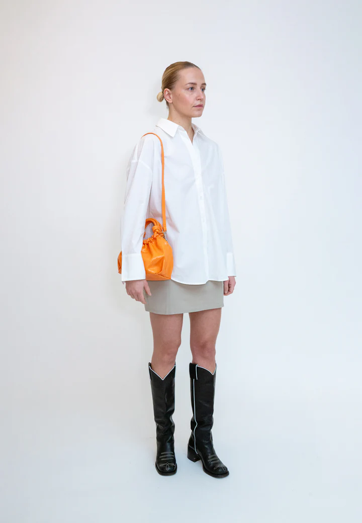 - Mini handtas met magneetsluiting en geknoopte details aan de handvatten.