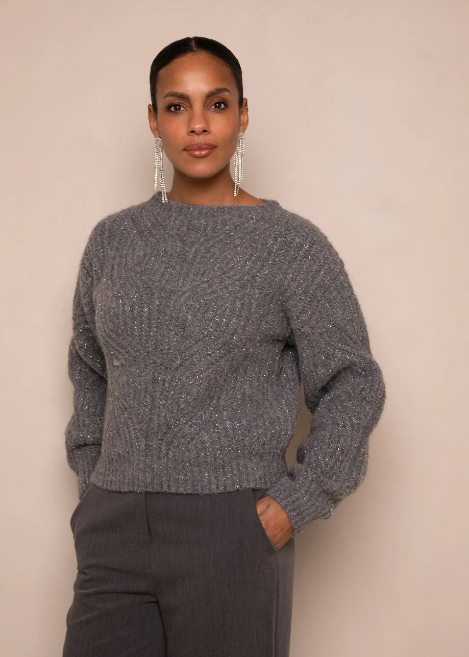 - De Kathleen Pullover is een zachte, gebreide trui met een rijke textuur en subtiele glans.