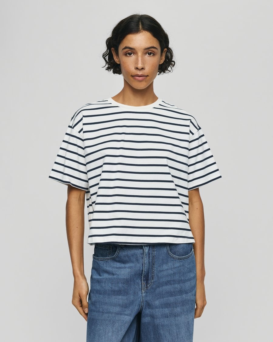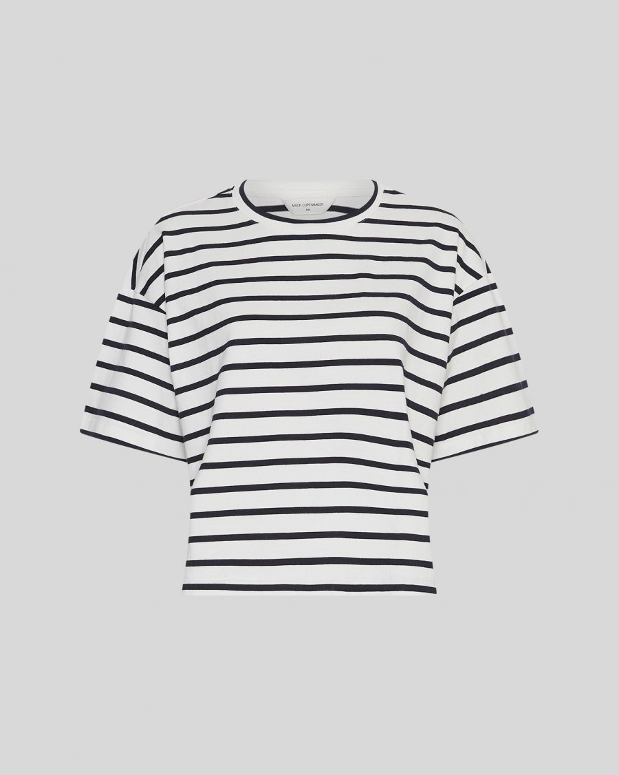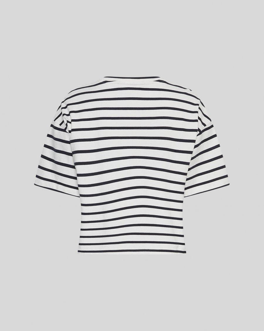 Onze Moa Melea tee is een basic T-shirt met een boxy pasvorm dat je keer op keer kunt dragen. Het T-shirt heeft een klassieke ronde hals en iets langere korte mouwen met verlaagde schoudernaden.