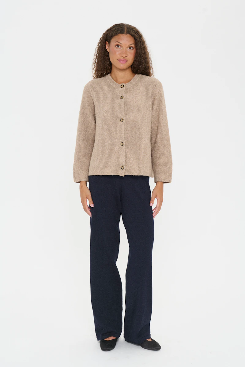 - Losvallend model met knoopsluiting aan de voorkant en geribde structuur.