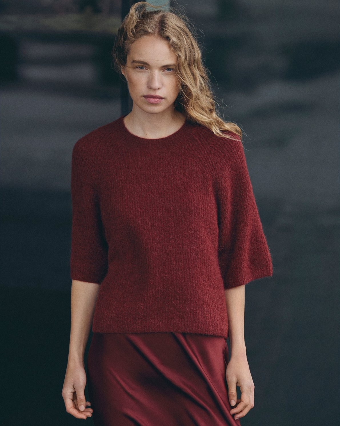 • Met een zachte textuur en een licht boxy silhouet heeft deze trui een klassieke ronde hals en 2/4-mouwen.