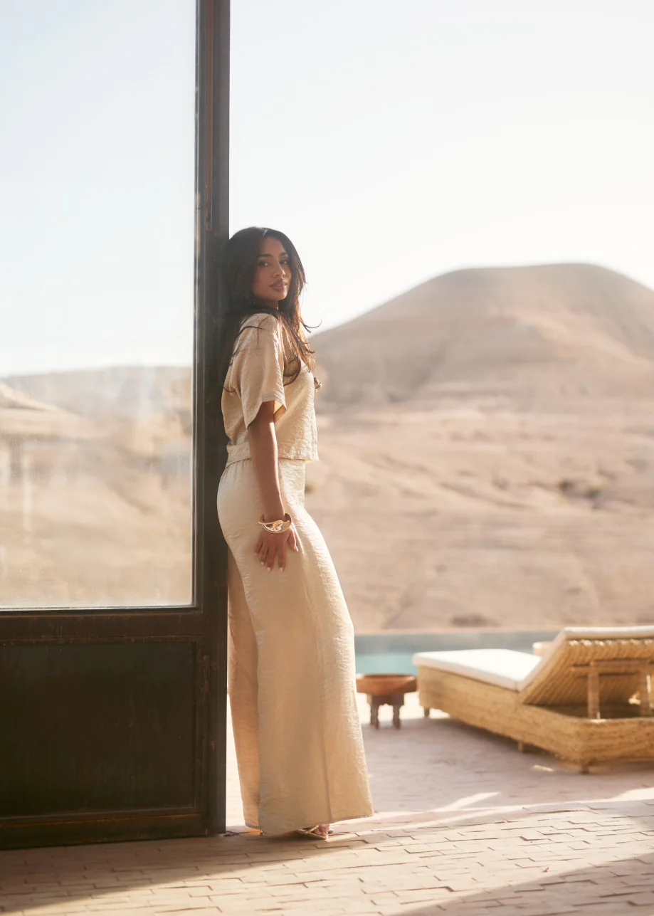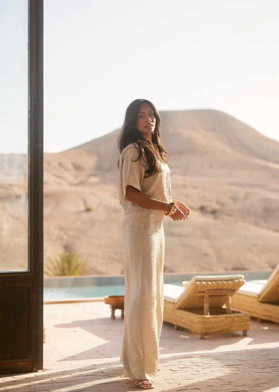 - Stofsamenstelling: 85% viscose, 15% metallic