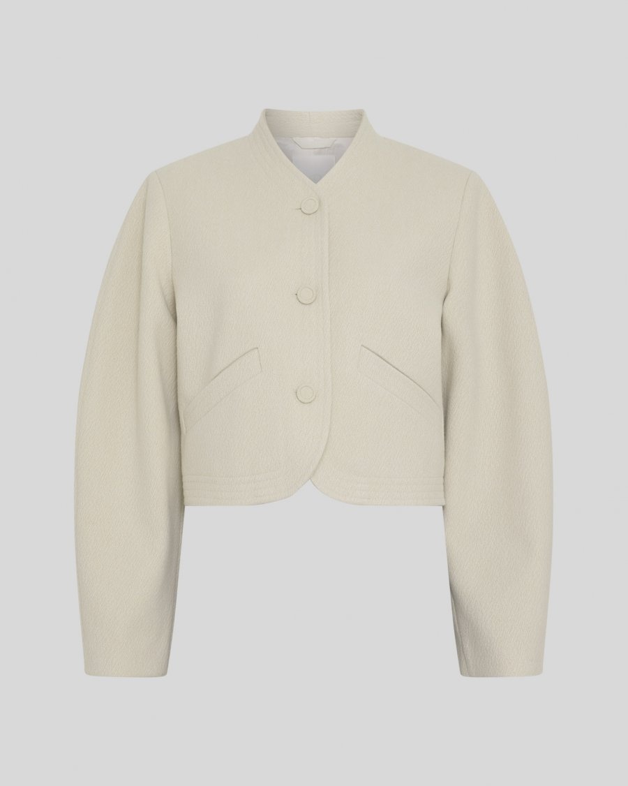- Prachtige korte jas met ronde hals en knoopsluiting.