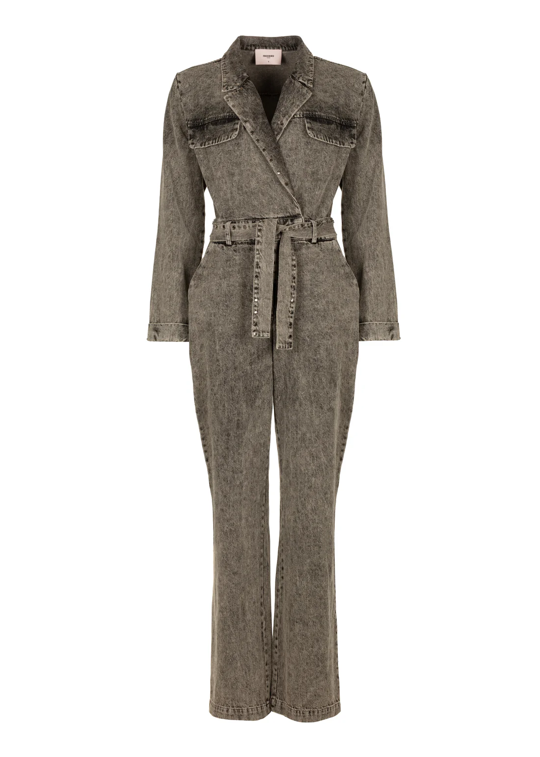 - De overslag aan de voorzijde en de strikceintuur in de taille zorgen voor een vrouwelijk silhouet, terwijl subtiele gunmetal studs op de borstzakken een stoere, luxe touch toevoegen.